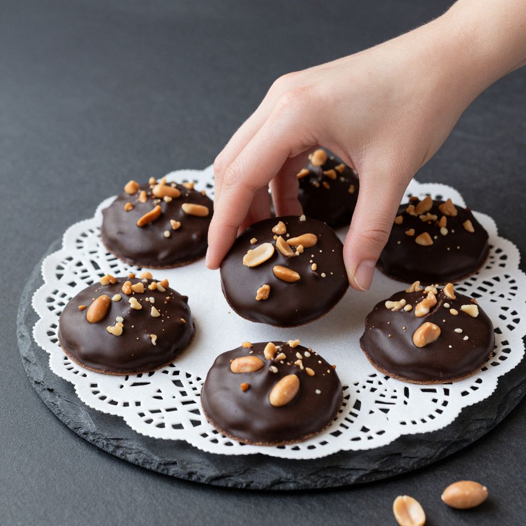 Cookies with peanuts - a woman hand reaches for it Cake Rack Chocolate Chocolate Covered Cookies Homemade Paper Lace Peanut Biscuit Peanuts Shortcrust Pastry Vintage Style American Food Baking Black Candy Chopped Nuts Crunchy Human Body Part Manufacturing Peanut Butter Recipe Slate Still Life Studio Photography Sweet Womans Hand Food Stories