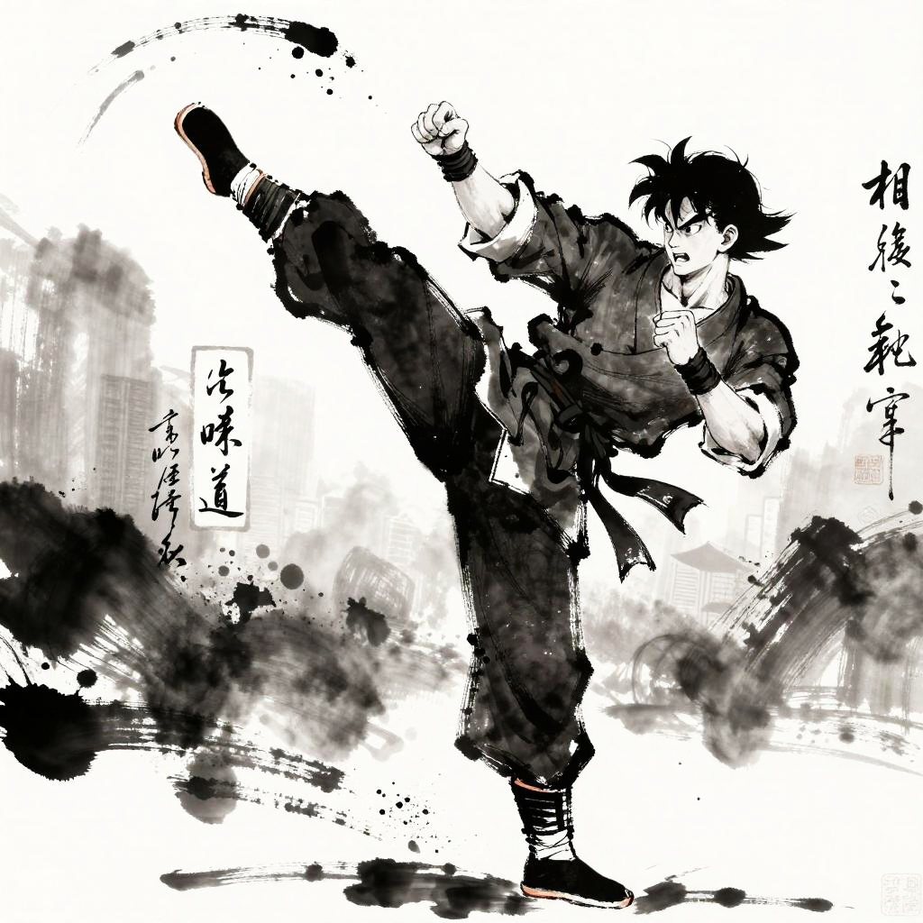 Martial Artist in Ink Wash Style