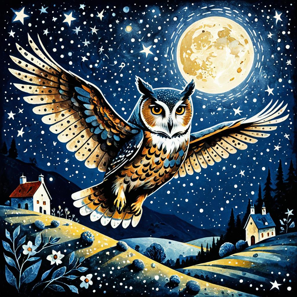 Old Artist Painting Stars in Marc Chagall Style