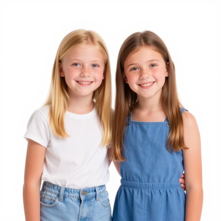 Collaboration smiling 9 year old blond girl, wes anderson merged with pixar animated style, isolated on white background,