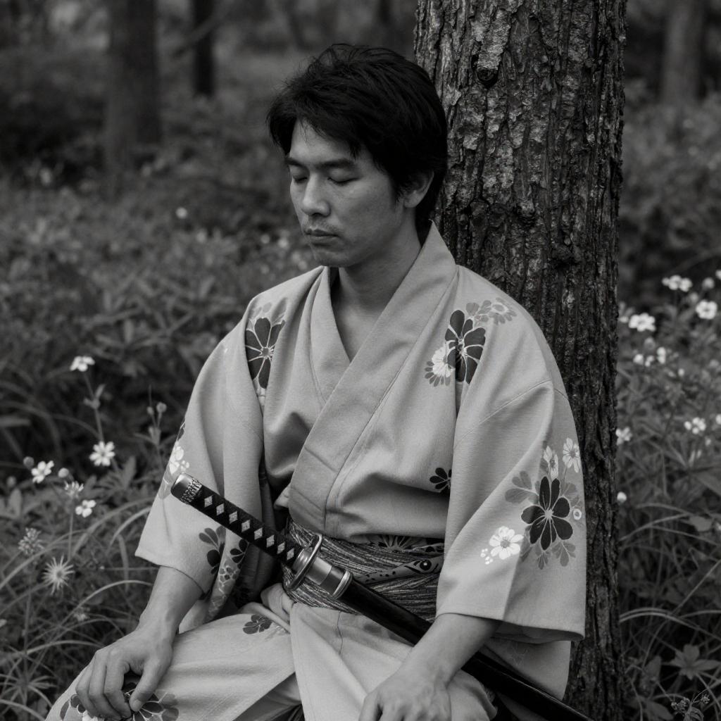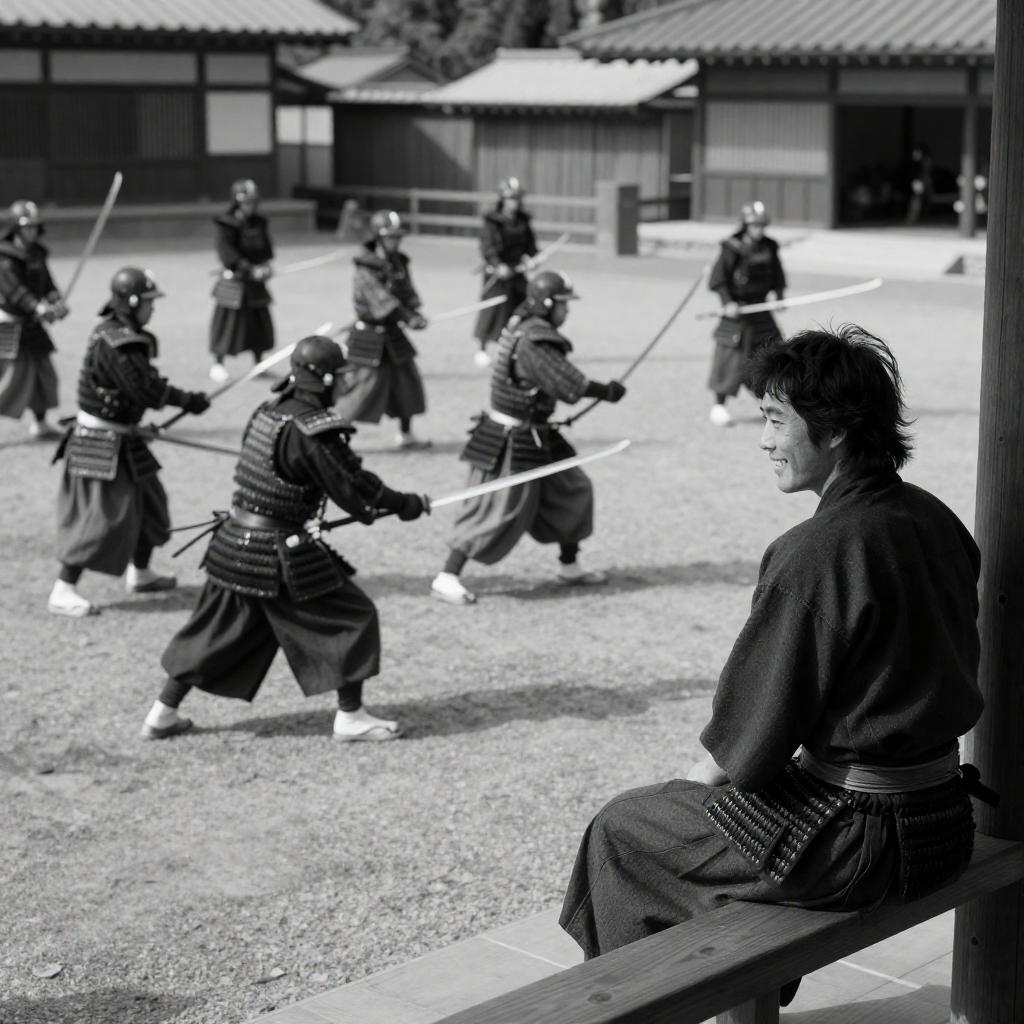 Traditional Japanese Gathering in Black and White