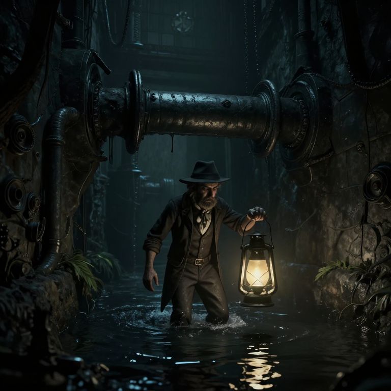 Dark Victorian Sewer Explorer Scene