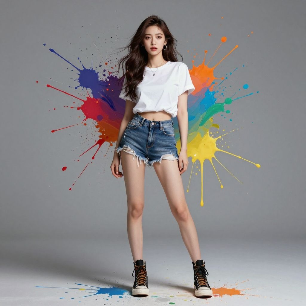Masterpiece, best quality, ultra-detailed, 1girl, colorful, full body, paint splatter