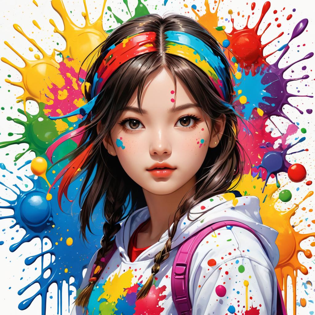 Ultra-Detailed Colorful Paint Splatter Girl