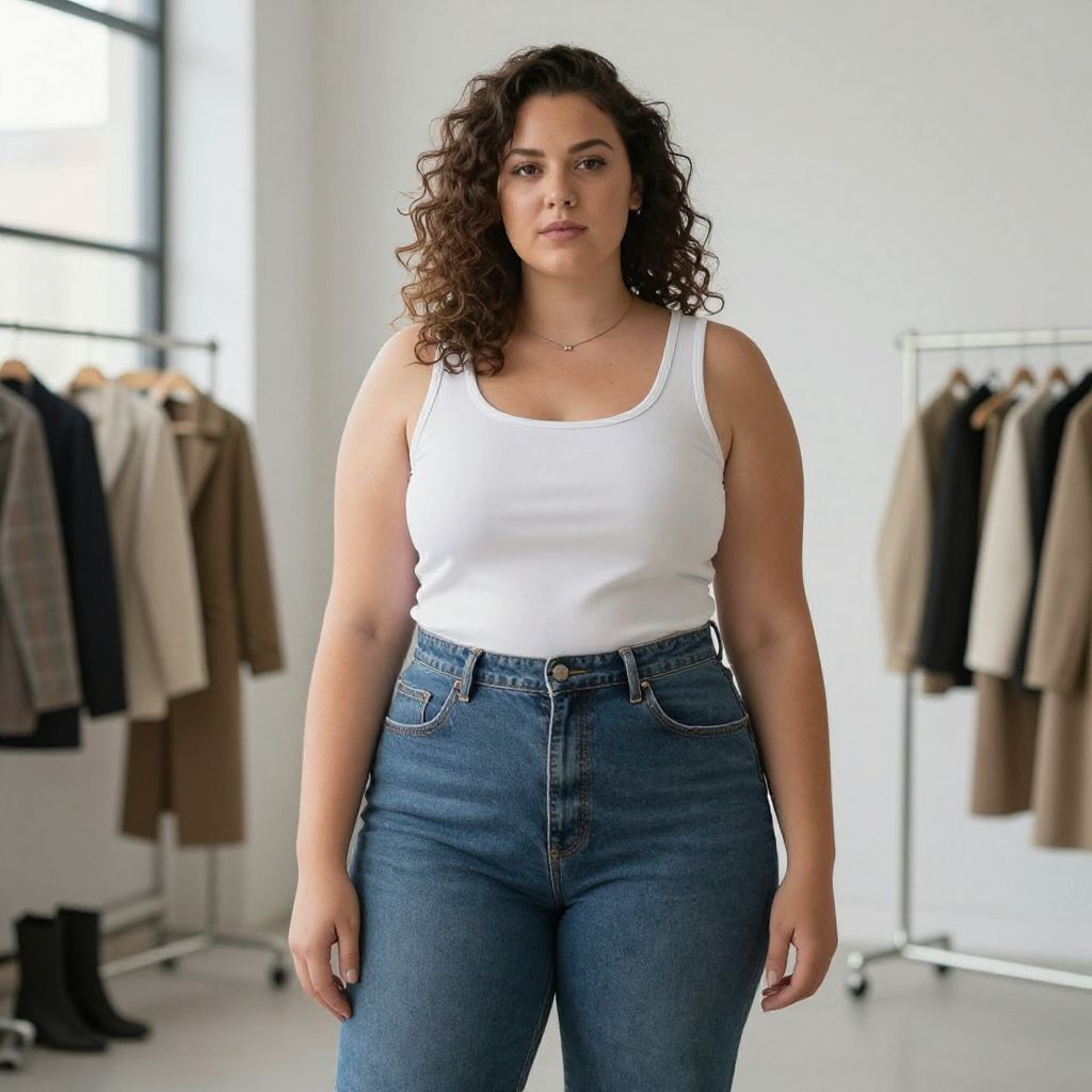 A Stocky woman in casual streetwear, wearing a dark brown oversized quilted coat, hands in pockets, with a tie-dye sweatshirt in blue and purple, black shorts, and chunky white sneakers. Visual style: Richard Estes. She stands in an outdoor market in a European village, surrounded by vibrant stalls and lively atmosphere. Sexy. Pretty face and beаutiful eyes. Big breasts