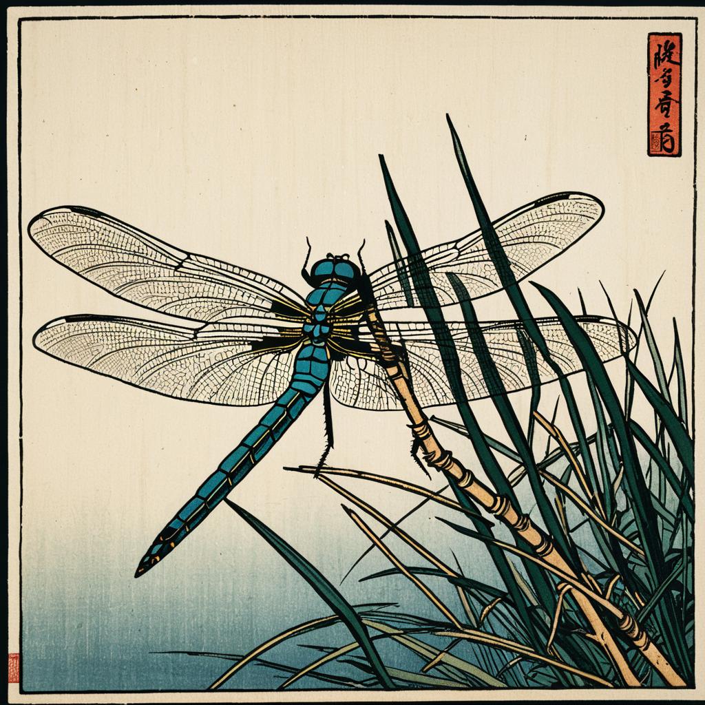Ukiyo-e woodblock print of a crane bird in the style of Shuntei. The print features intricate lines and traditional Japanese woodblock color palette.