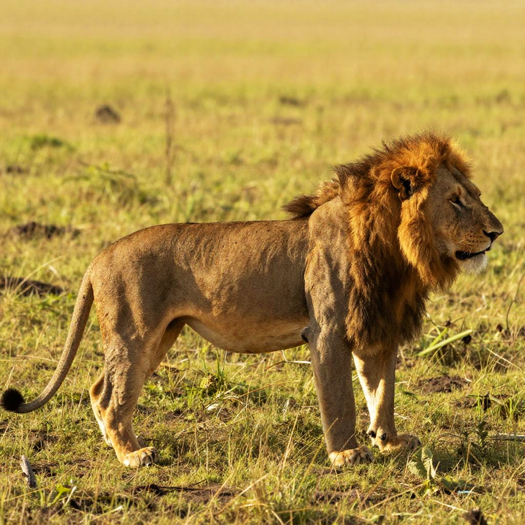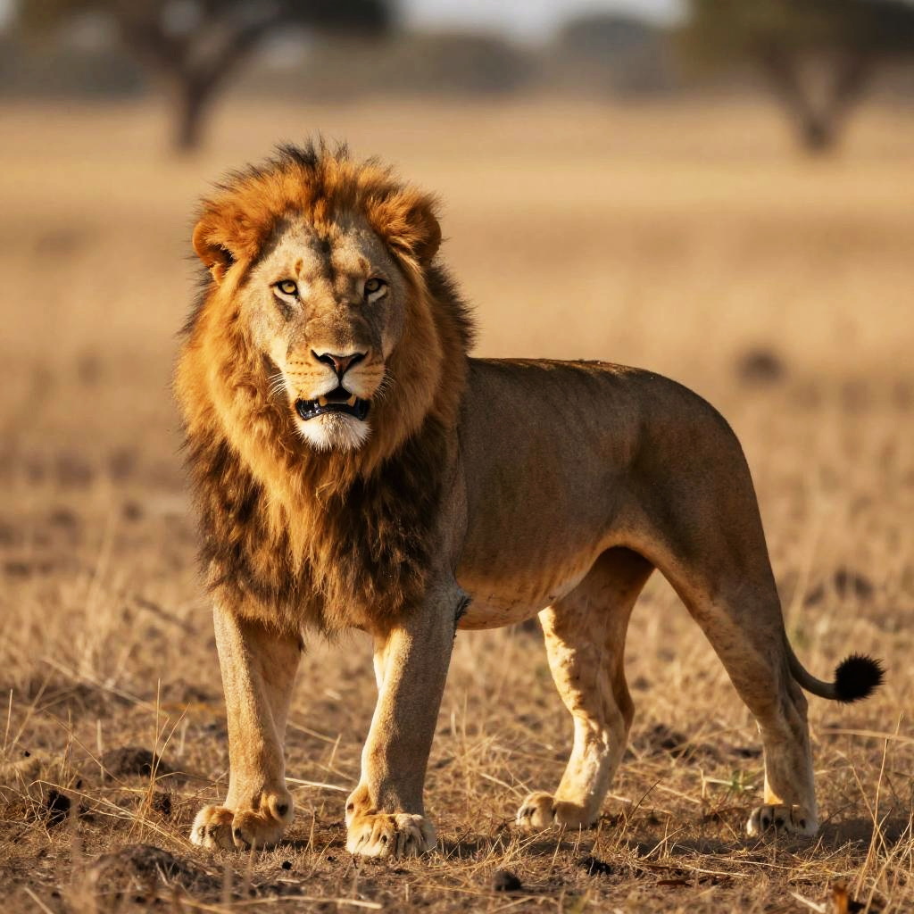 Lions mating rituals captured during dawn in an open plain, roaring male and receptive female, naturalistic colors, photorealistic textures, serene yet powerful atmosphere