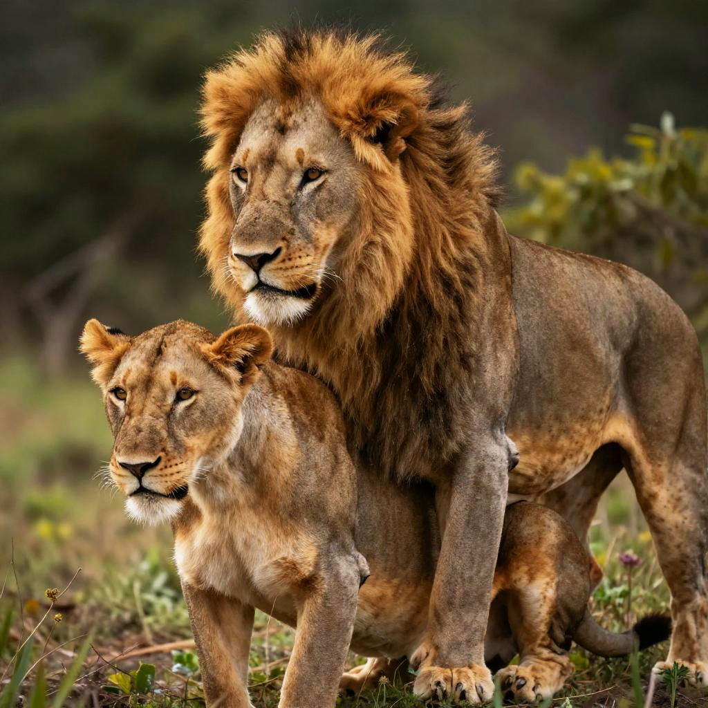 Dawn Lion Mating Rituals Photorealistic