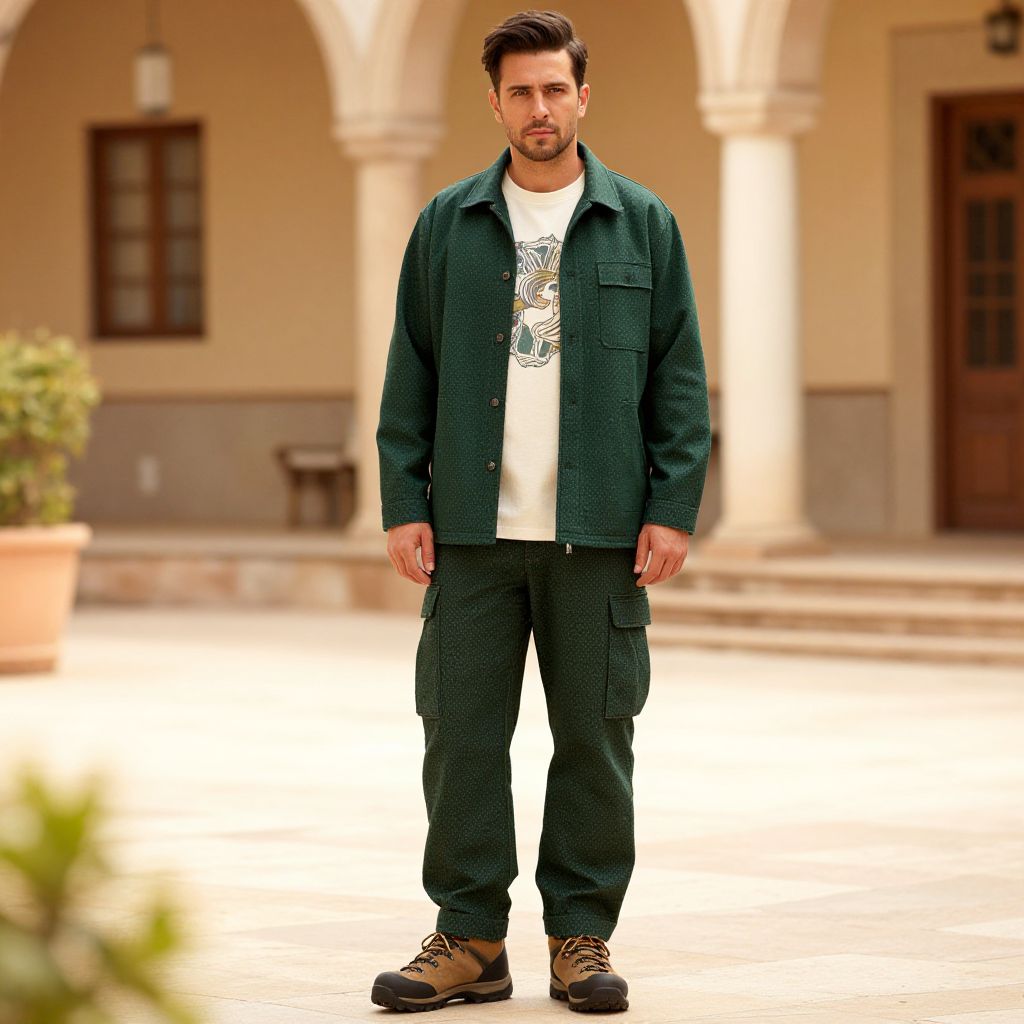 Man in Rugged Forest Green Outfit