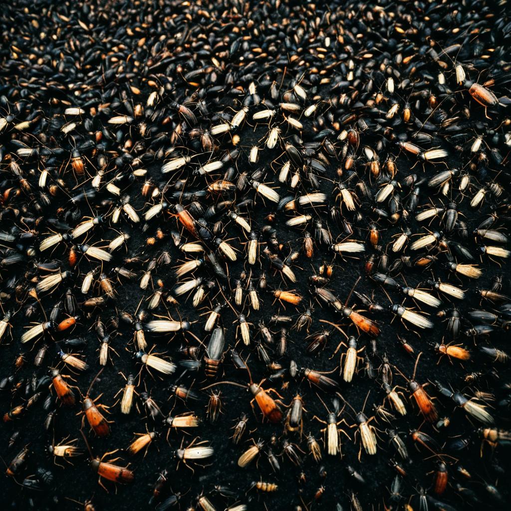 Kodak portra 16035 mm photograph of migration of thousand gross cockroach, 8 k ultra - detailed, real photography, hightly detailed, hyper realistic, photographic, wide angle lens, focuses on the nuances of the human face and subtle shifts in tonal value, silhouette composition, neutral, cool - toned palette, fluid patterns, powerful composition