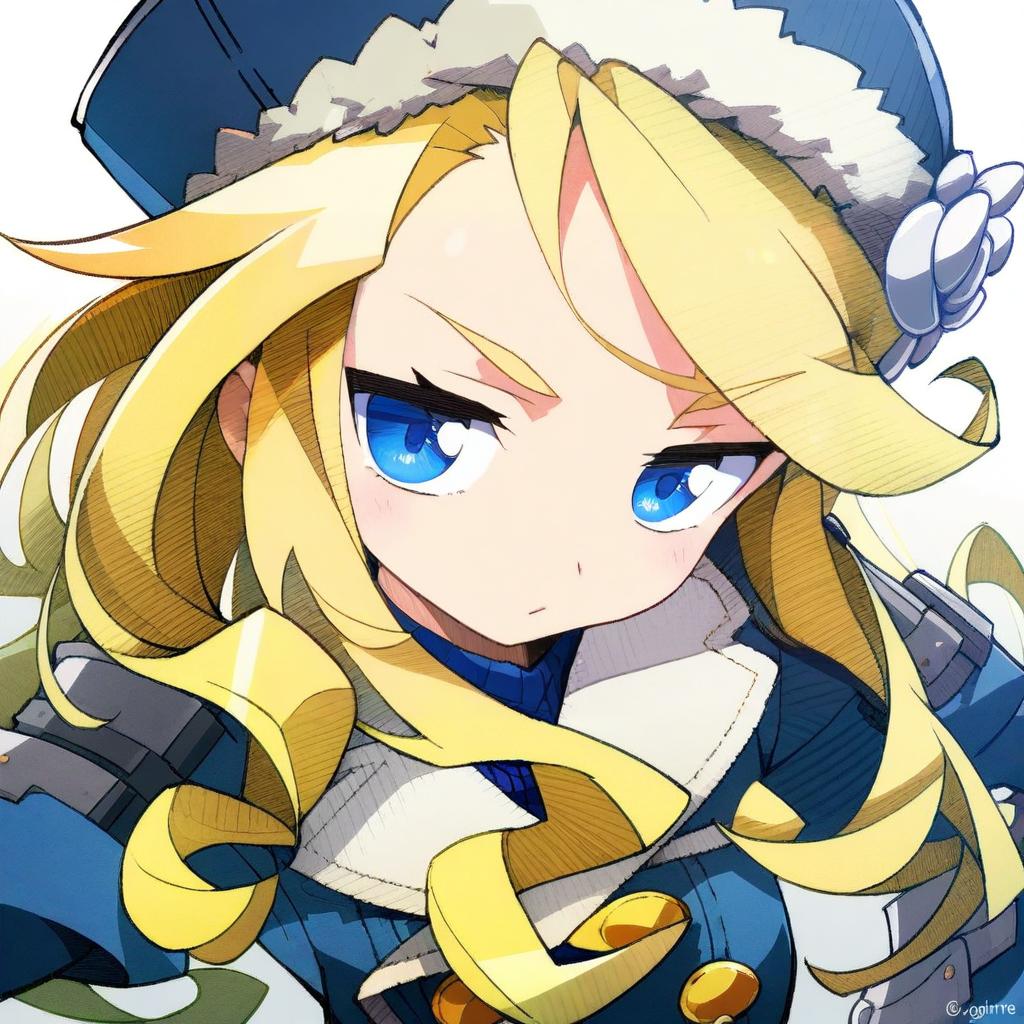 Gunner 2 (sekaiju), sekaiju no meikyuu, 1girl, blue eyes, blonde hair, long hair, hat, by artist gofu, animagine
