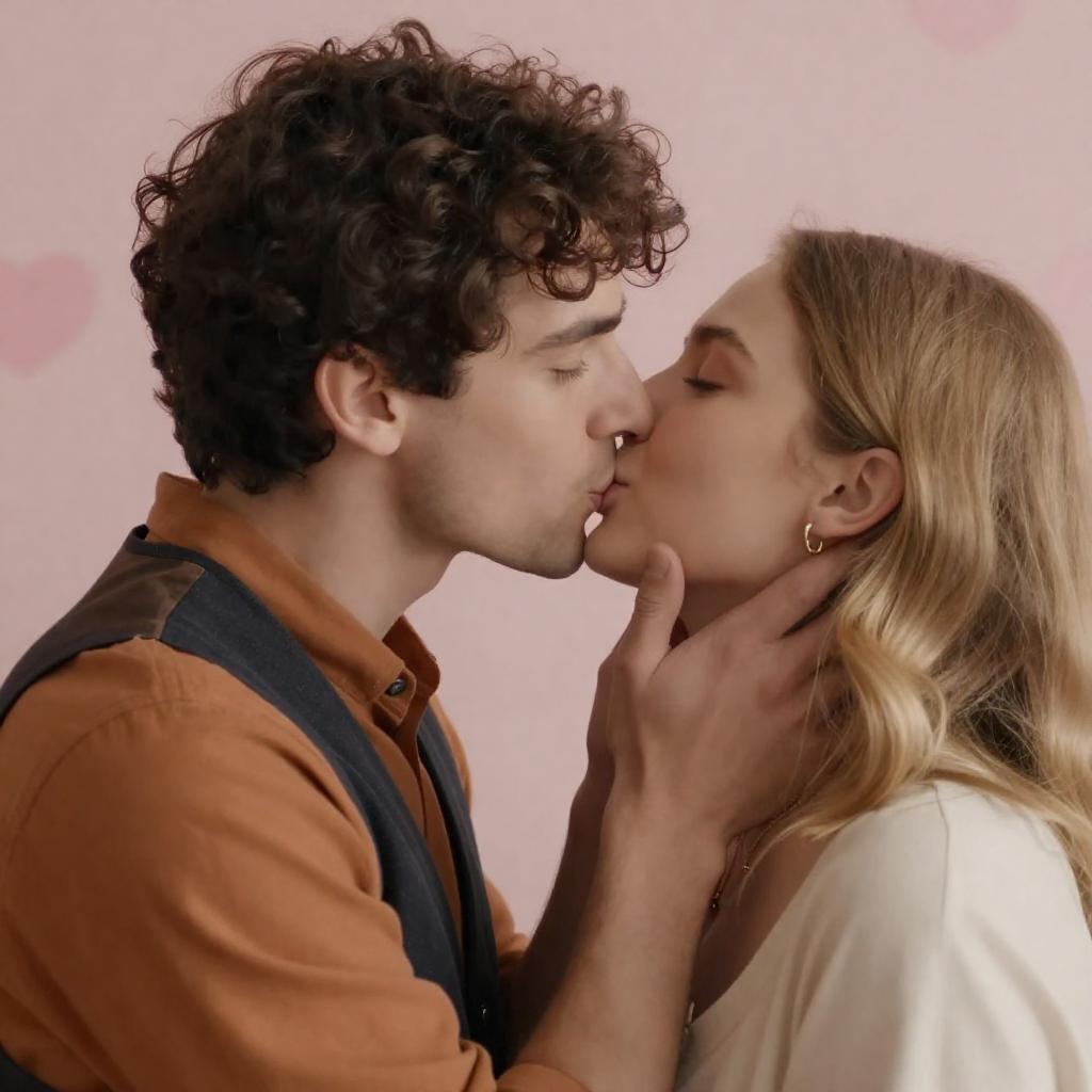 Intimate Kiss in Dimly Lit Room