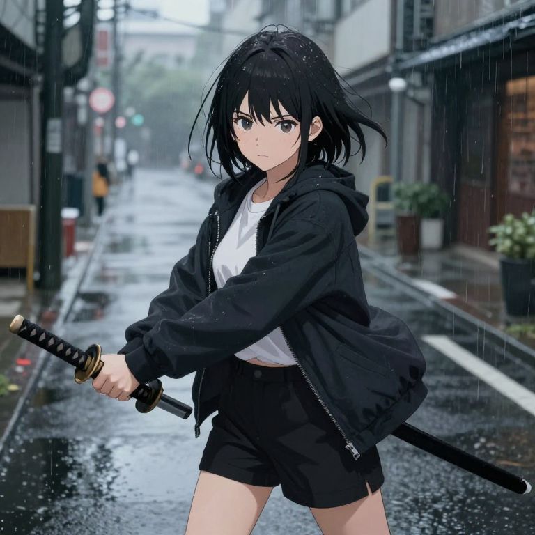 Anime-style digital illustration of a black-haired cat-eared girl in a white "CAT" jacket, adjusting network cables in a modern control room with "