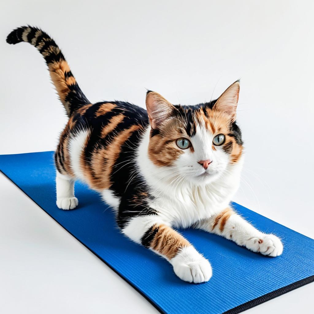 Joyful Calico Cat Yoga Illustration