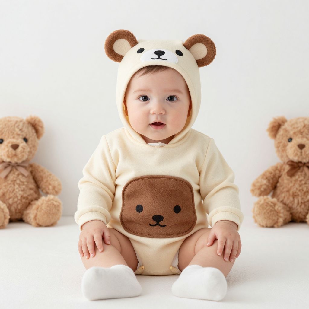 Infant Cocomelon Costume, baby wearing a costume that looks like a bear