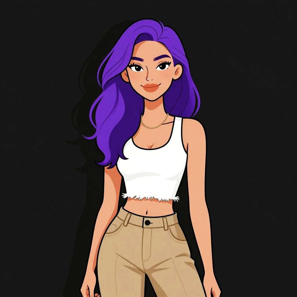 Woman with pretty face and pretty hair. Woman, casual chic, black sleeveless crop top with a high round neckline, pairing with patterned high-waist running shorts in black and white with a red trim, minimalistic silver watch, studio background with a gradient of gray tones. --sref 1467