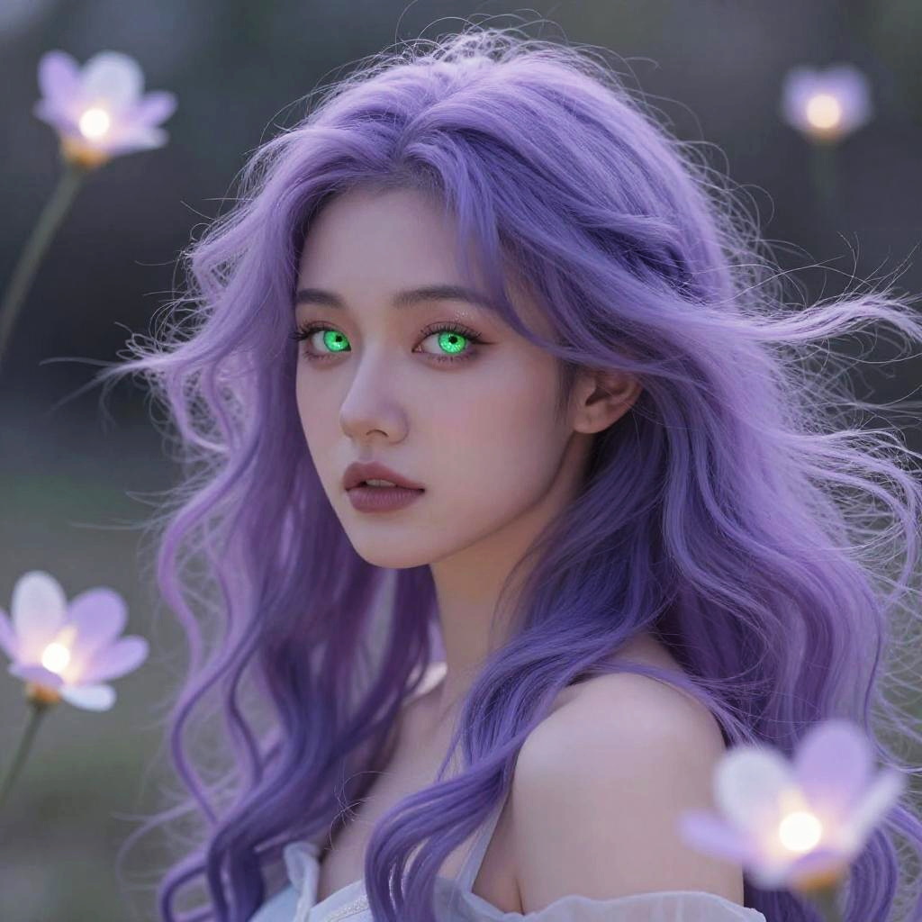 Dreamy Girl with Green Eyes and Cherry Blossoms