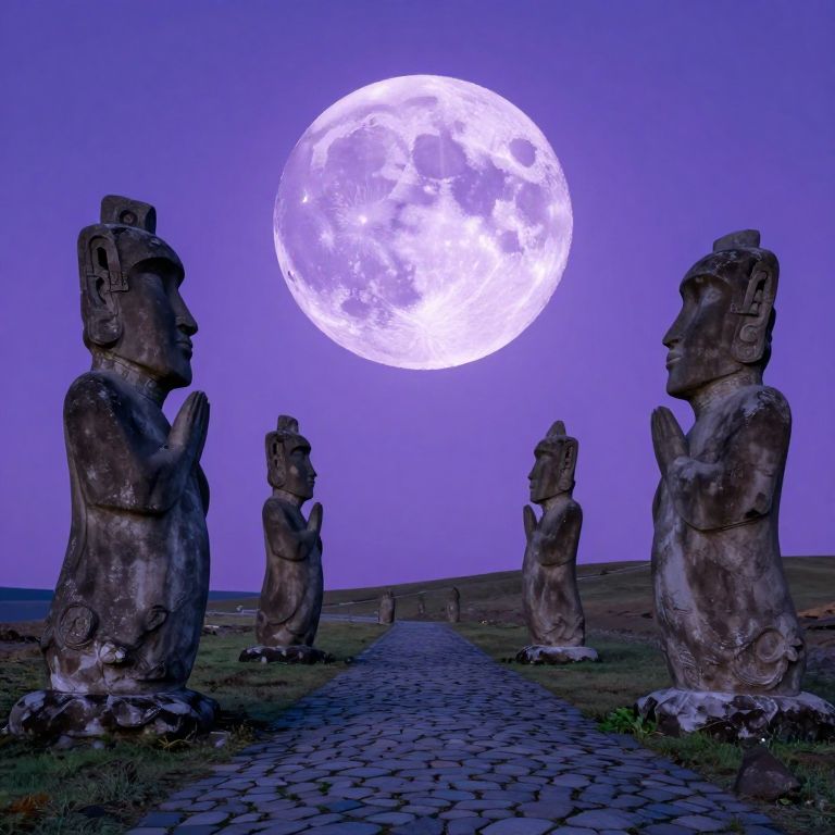 Stone Statues Under Purple Moon