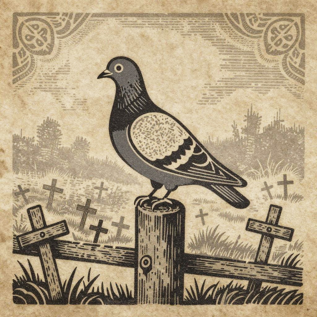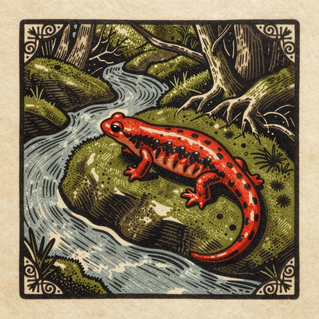 Woodcut Style Orchard with Carpenter Bees and Beehive