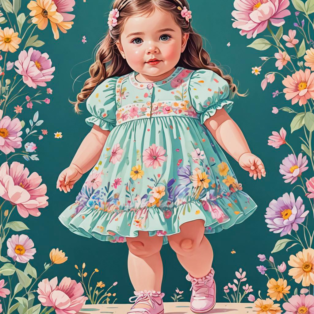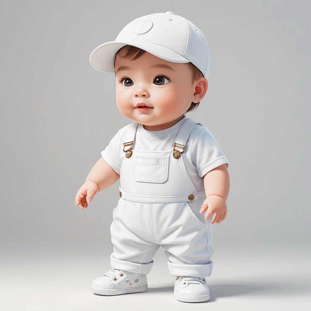 Cute Cartoon Toddler Boy in Yellow and Blue Outfit