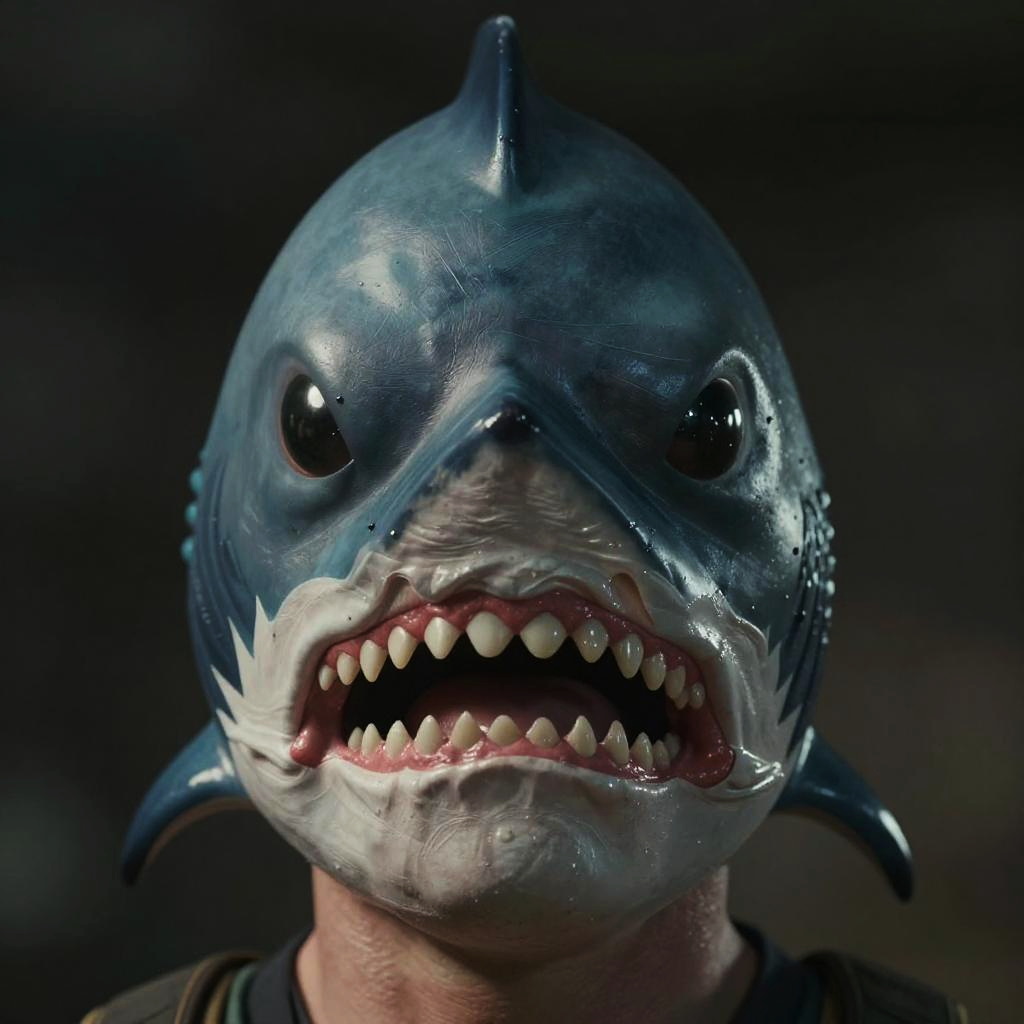 Hyperrealistic Surfer with Shark Mask