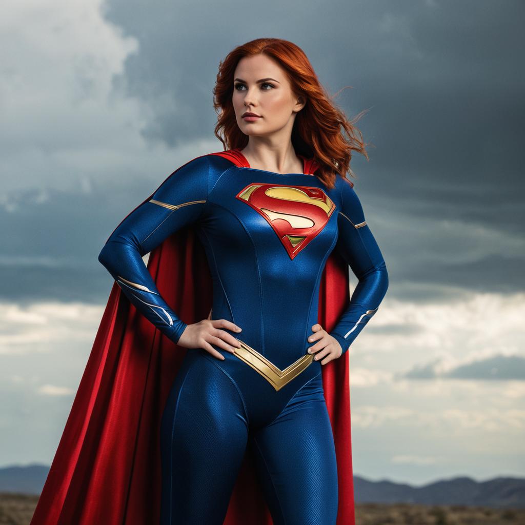Blonde Superhero Woman in Lightning Storm
