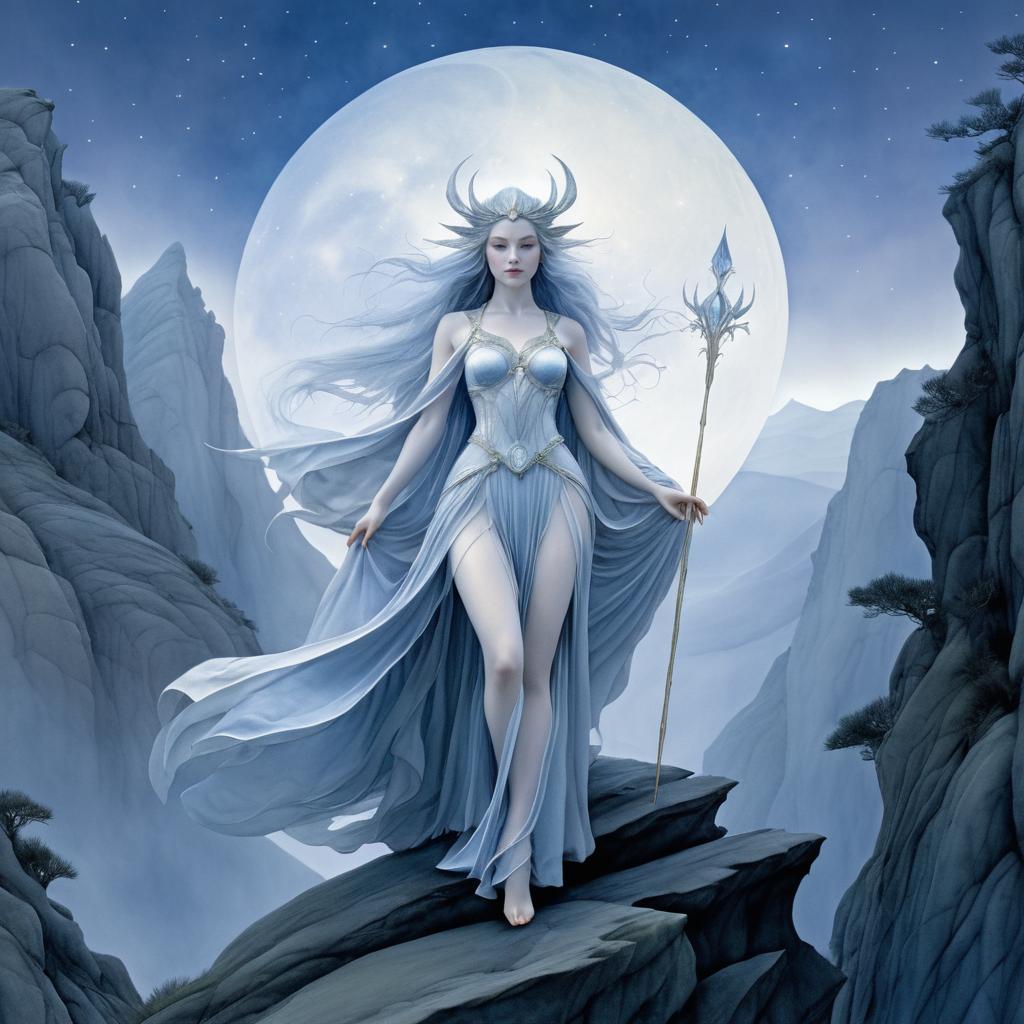 Ethereal Moon Goddess in Mountains