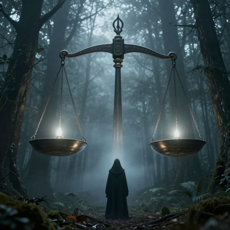 Ethereal Judgment Scale Above Forest
