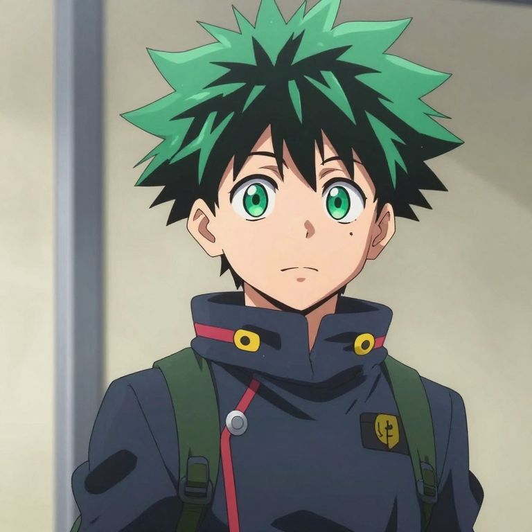 Hero Academia Uniform, anime character with green hair and green eyes