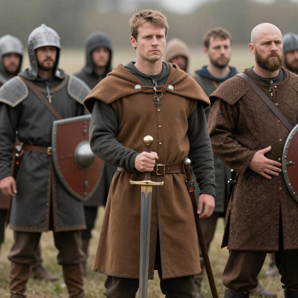 Medieval Armor Reenactment with American Flag