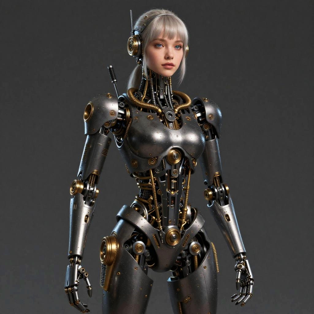 High-Resolution Mechanical Girl Portrait