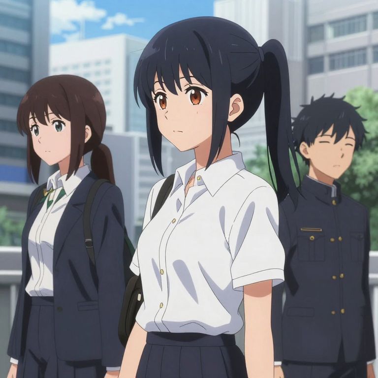 Alternate History /Anime,A teenage girl,black ponytail,Modern urban background,The characters take up a quarter of the frame,