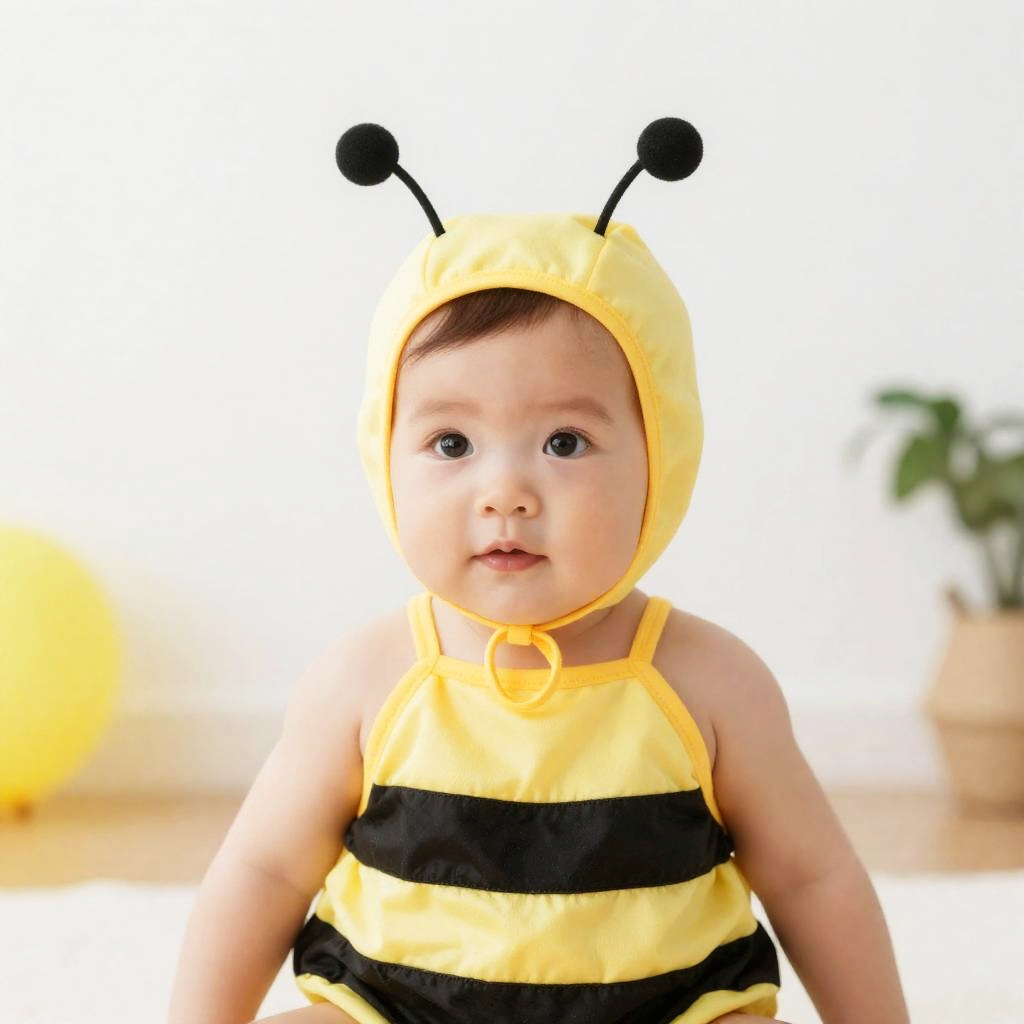 Man Caterpillar Costume, dressed in a costume of a bee with a yellow vest