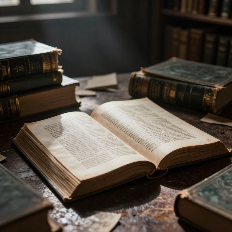In an ancient, crumbling library bathed in ethereal light, an open book lies abandoned amidst scattered volumes, its pages seemingly whispering secrets to a world forgotten yet alive with the echoes of timeless knowledge.