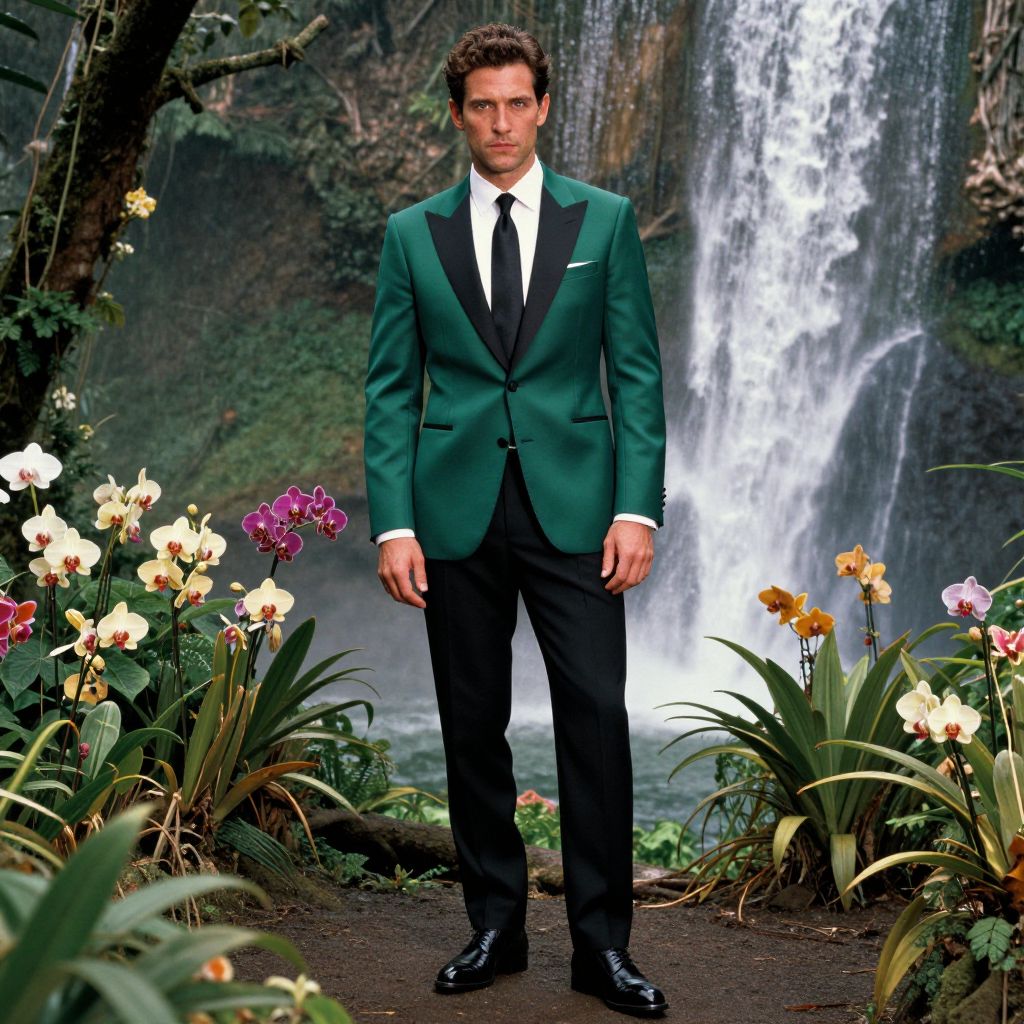 Man in Emerald Tuxedo in Rainforest