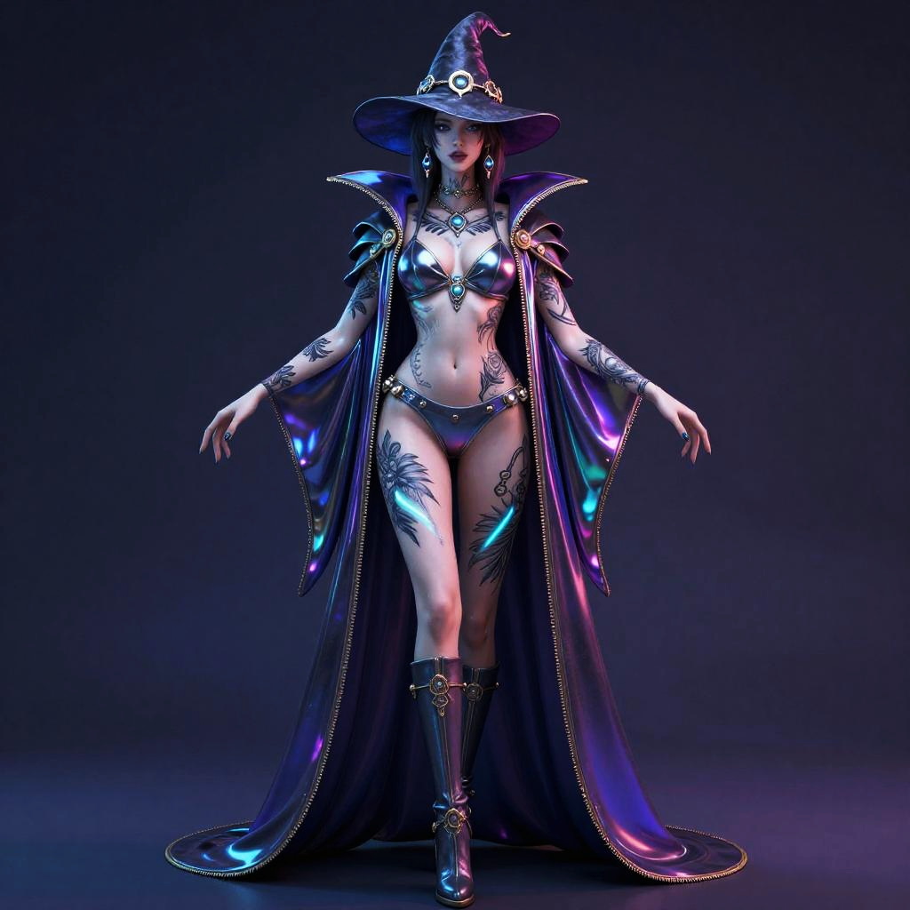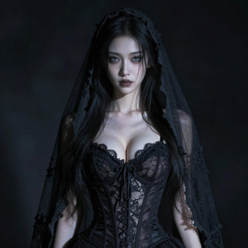 Exotic cyborg assassin, extra large cleavage, athletic build, robotic limbs, stealth black tactical suit.