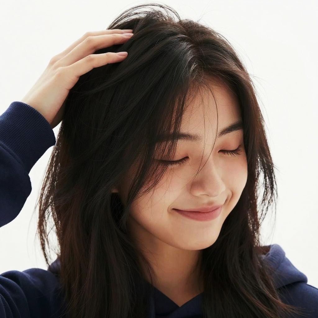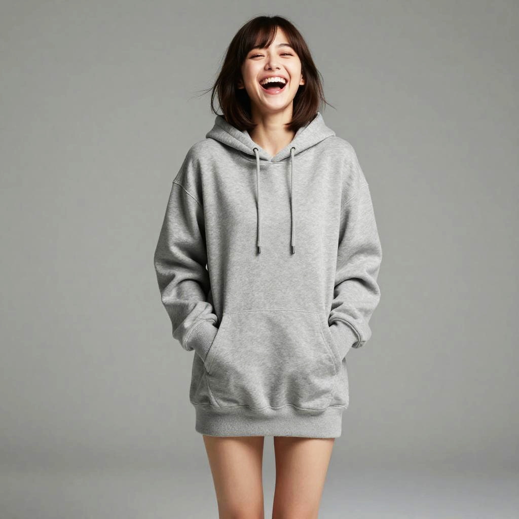 Laughing Young Woman in Long Hoodie