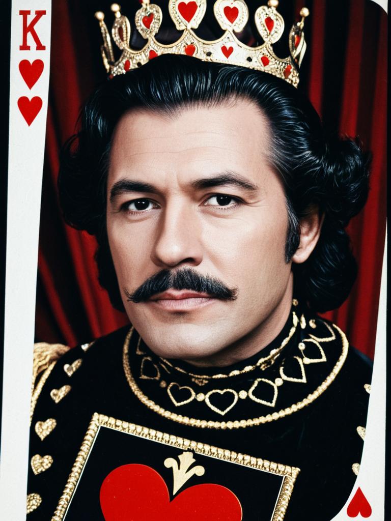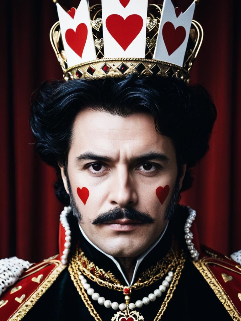 Man in King of Hearts Costume, close-up detailed headshot with regal styling