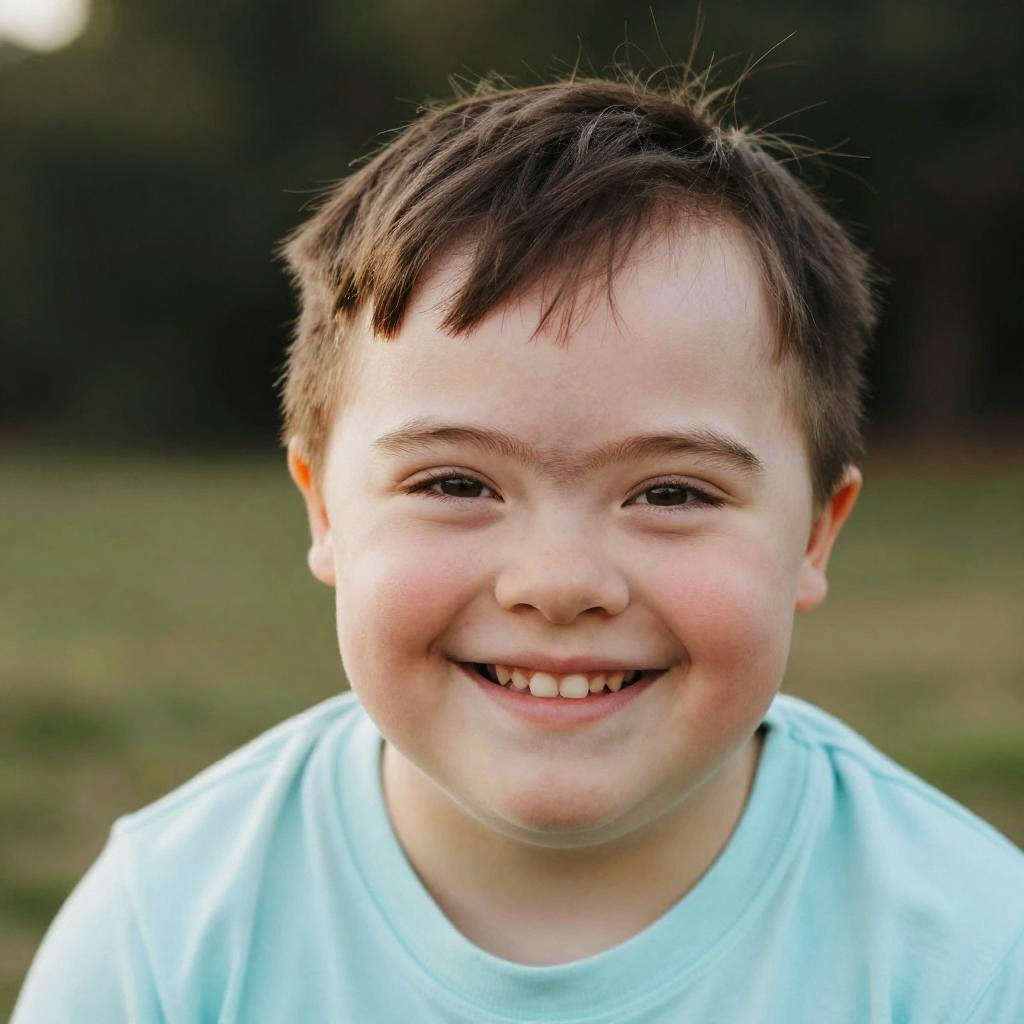 Joyful Child with Down Syndrome Eyebrows