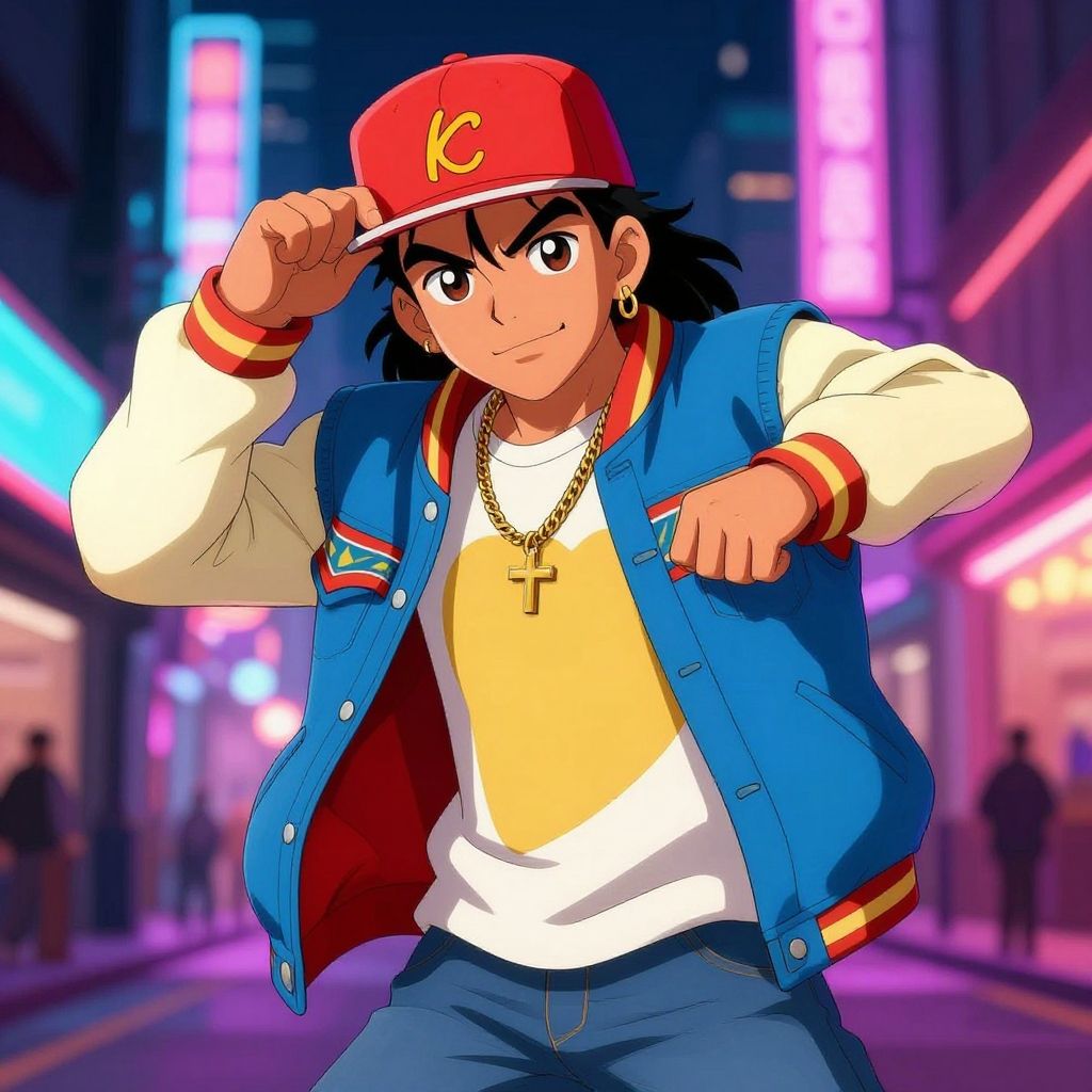 Latino Anime Character in Neon Streetwear