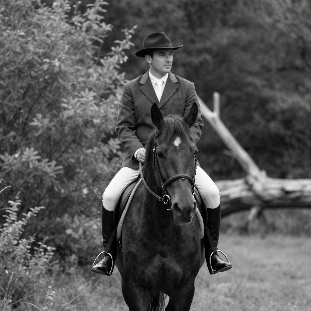 Black-and-White Cowboy on Horse-Drawn Stagecoach