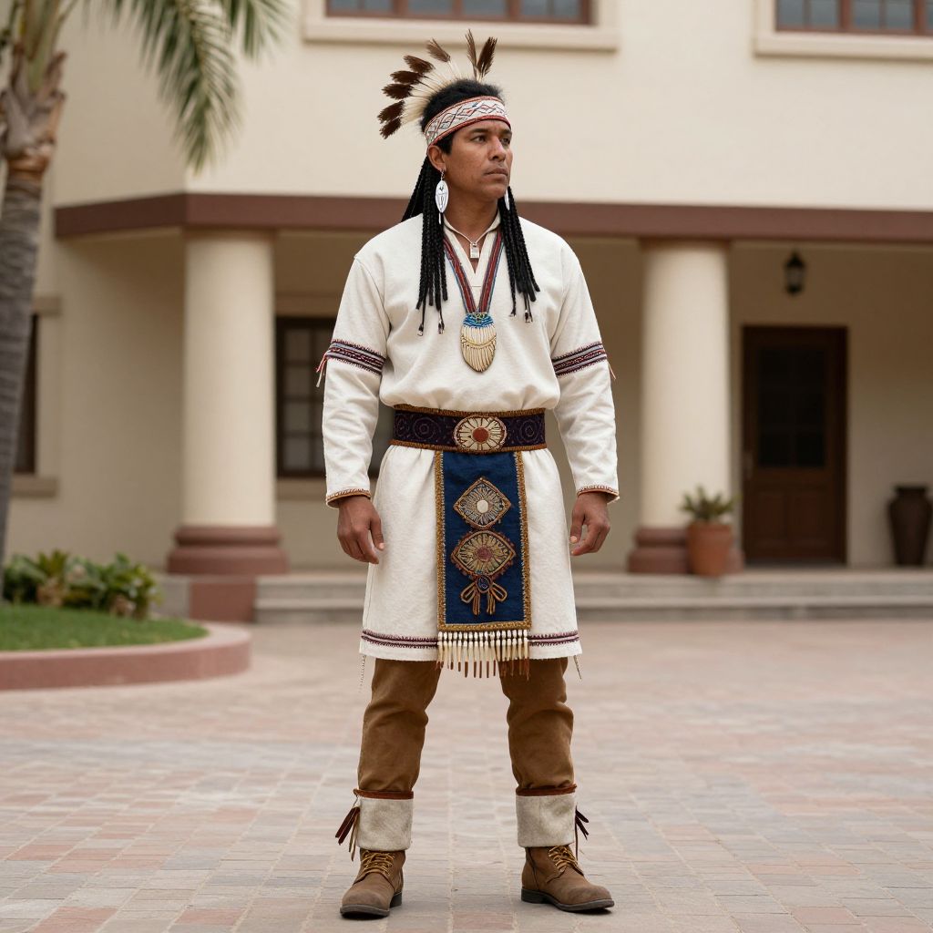 Kateri Tekakwitha Costume, dressed in native american clothing standing in front of a building