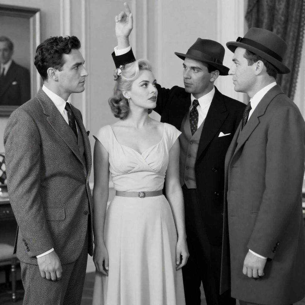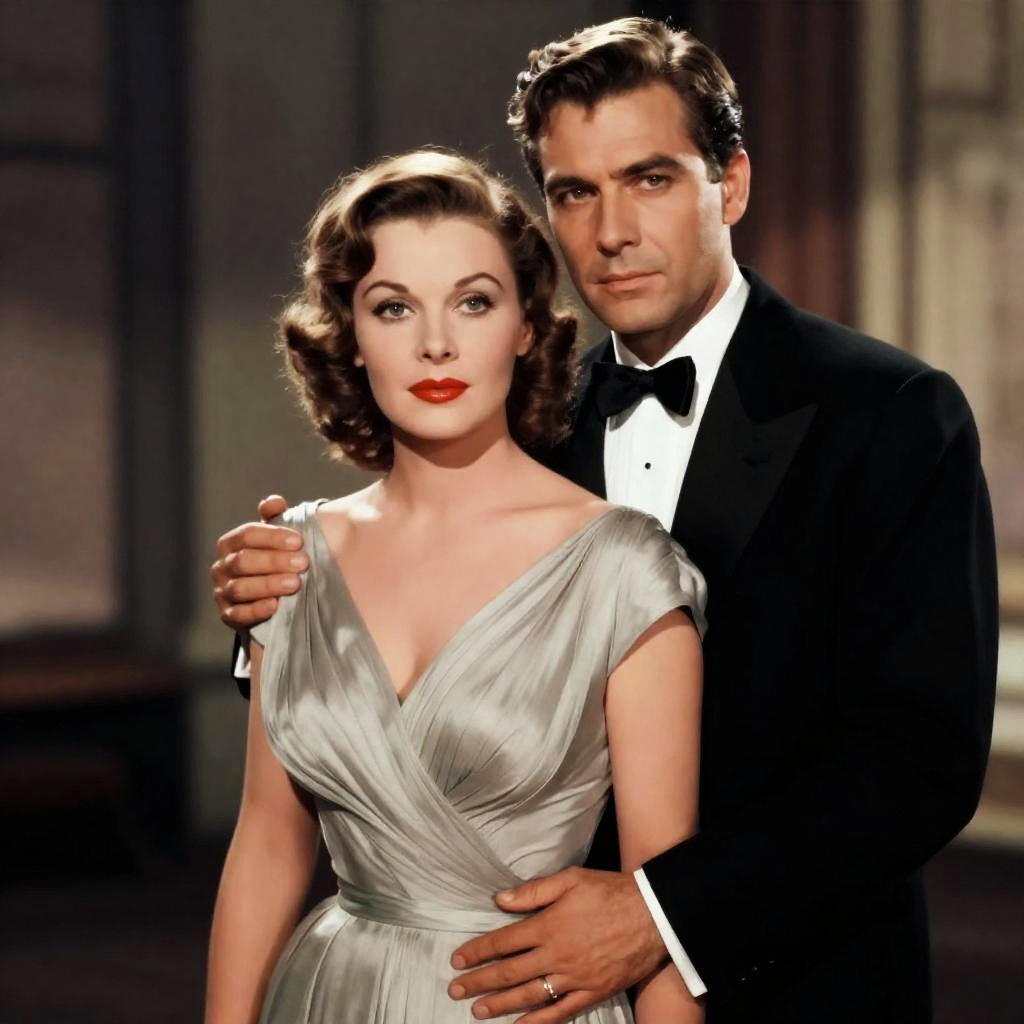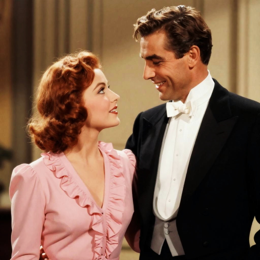Vintage movie poster. Tony Curtis in black suit, dancing with blonde woman in yellow dress, left. Black-and-white photograph of Curtis in suit, sitting on couch, talking to woman in white dress, right. Yellow background. Two people, one pair dancing, one pair sitting.