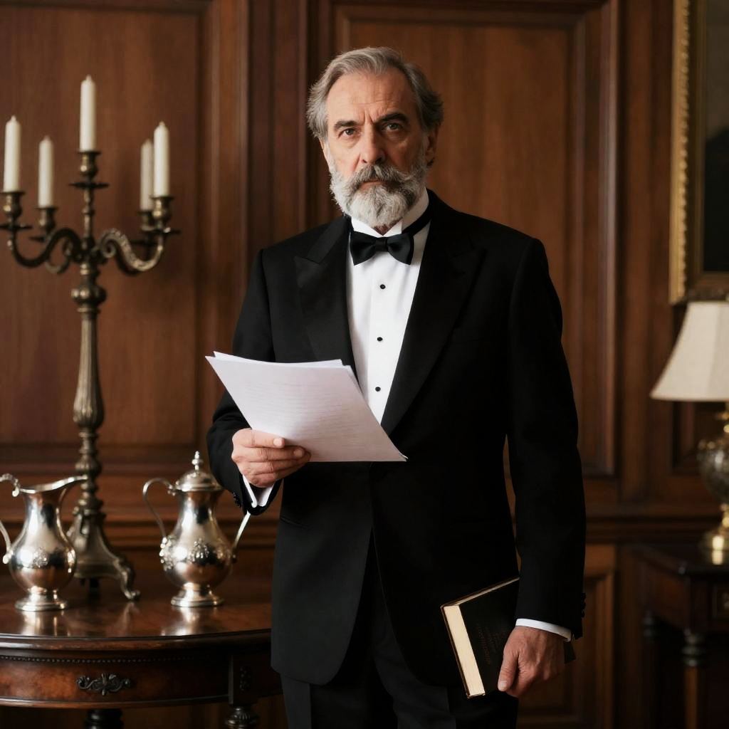 Focused Man with Hourglass by Fireplace