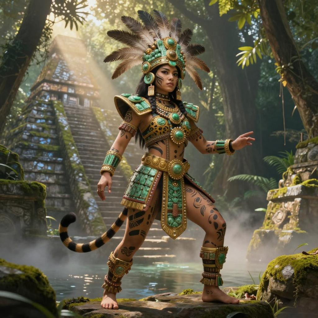 Majestic Mesoamerican Jaguar Warrior Priestess