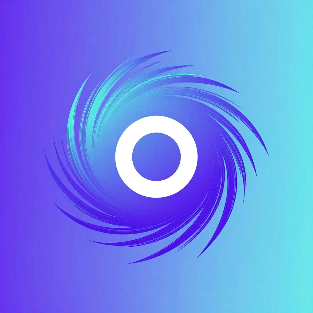Logo:o4gsdjhttn8= abstract techno symbol, vibrant gradient colors blending purple and cyan, dynamic energy lines swirling around central icon, glossy finish, designed for innovative startup identity, futuristic and eye-catching