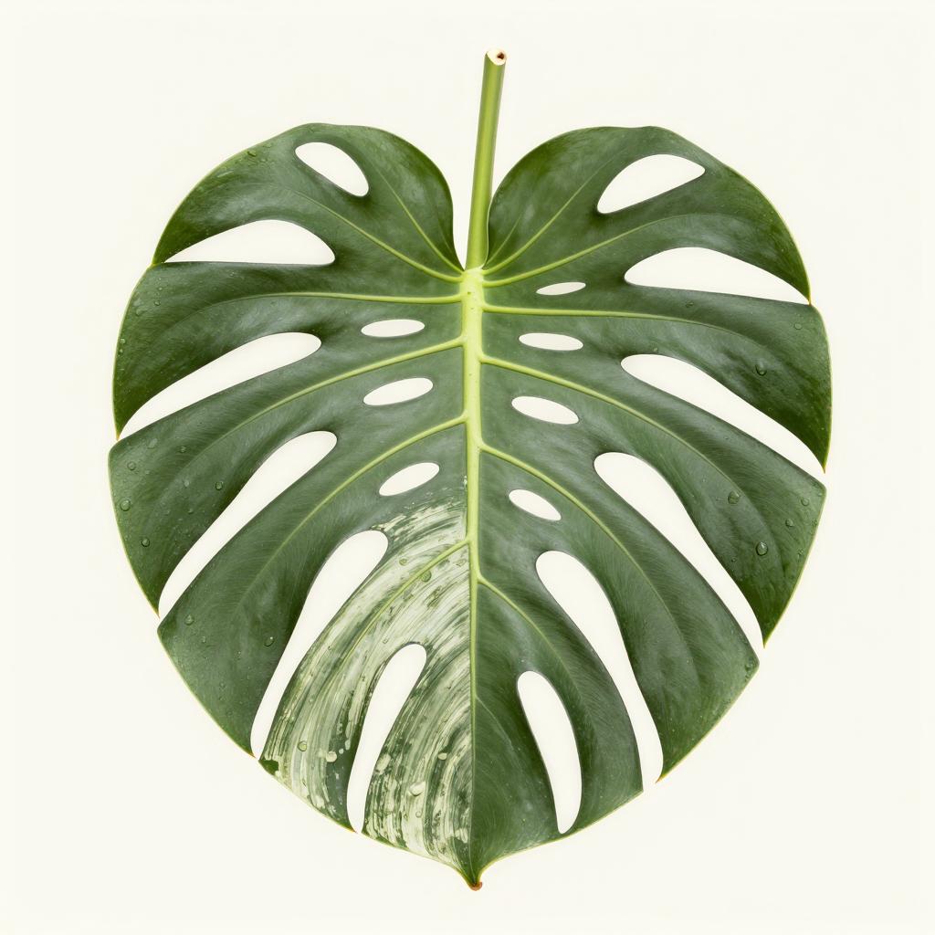 Painted one leaf of Monstera deliciosa, matte leaf, 50% size, on cream background, highly detailed, national geagraphic, realistic photo, professional color grading, clean sharp, focus, film photography,