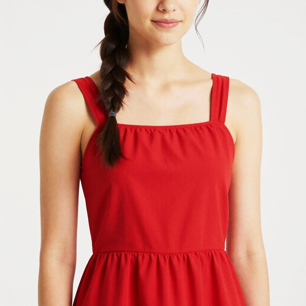 Abby Turning Red Costume Adult, a close up of a woman with a braid in a red dress