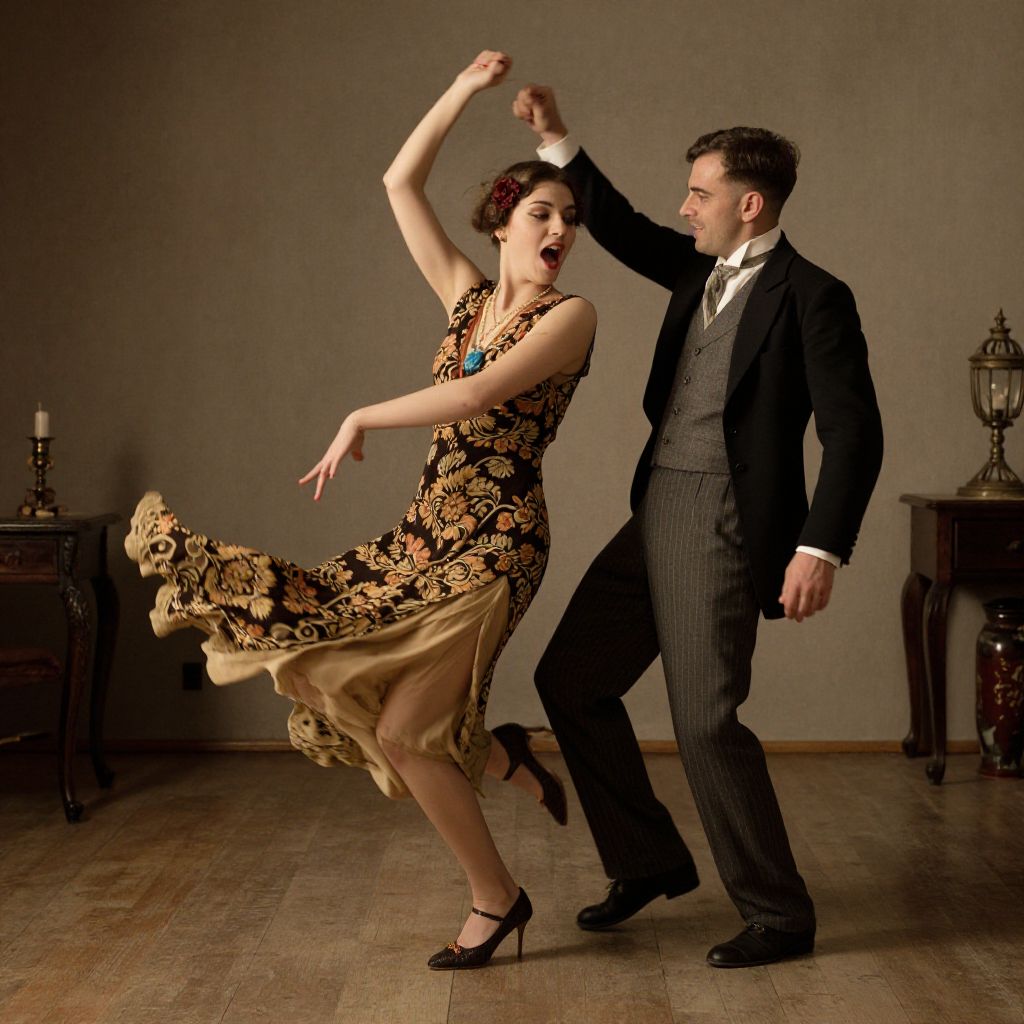 1920s Couple Dancing Energetically Indoors