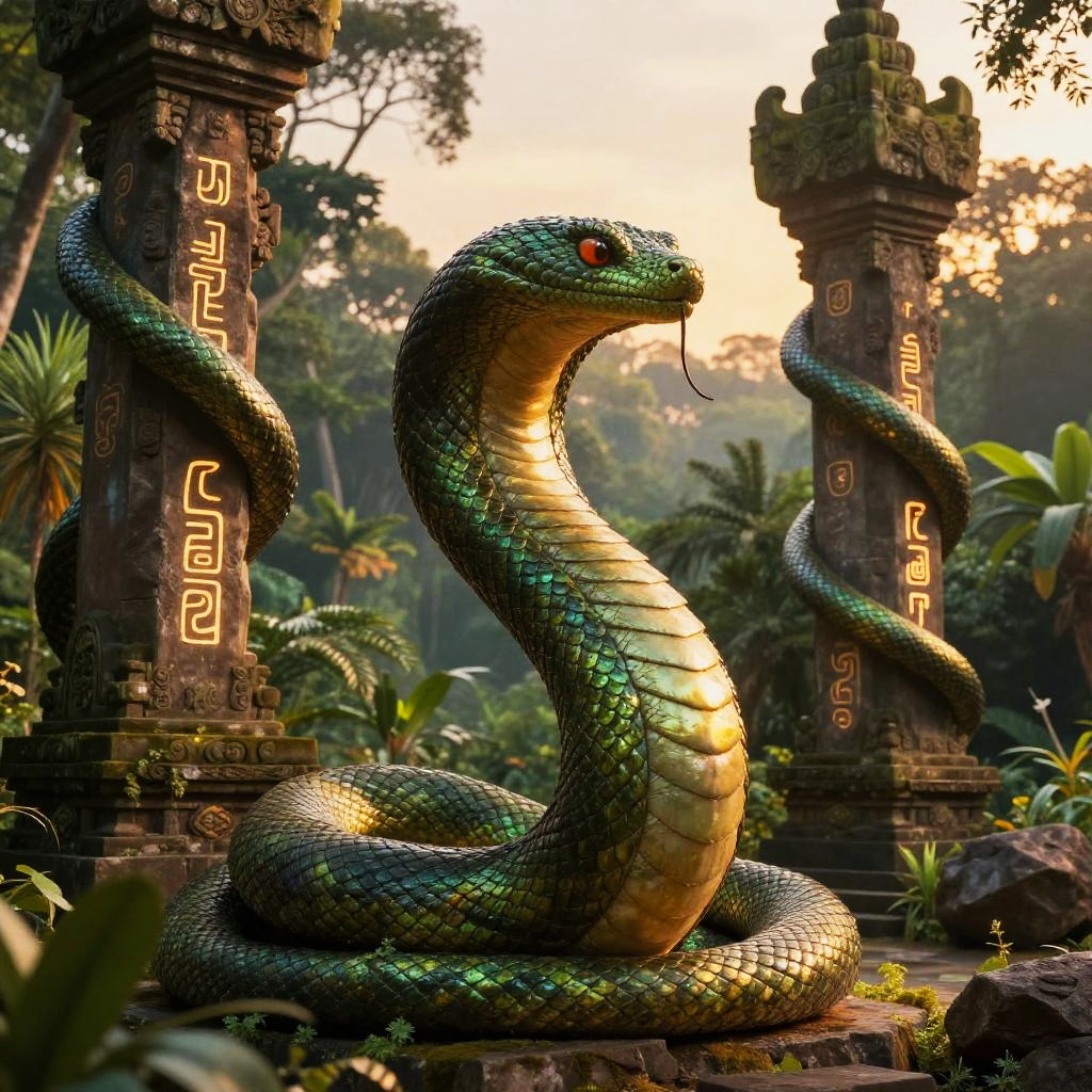 Mythical Serpent God at Ancient Temple